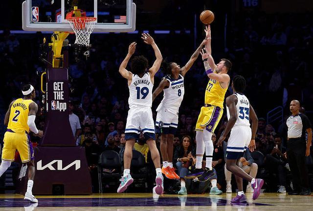 虽然老詹今天确实身着便服坐在场边且十分活跃,但湖人能在今天赢球,靠的依然是无所不能的东契奇。